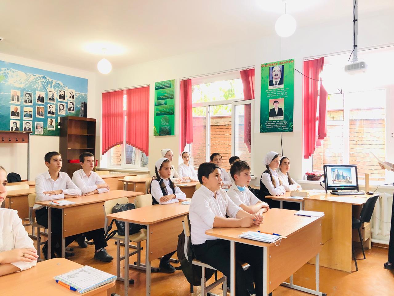 5 сентября классные руководители Дакаева С.С. (8а класс) и Орцуева Р.А. (7в класс) . провели классные часы «Нохчийчоь- сан Даймохк»., «Цвети Республика моя». Дети прочли стихотворения «Нохчийчоь», «Даймохк», «Б1аьсте ер ю».