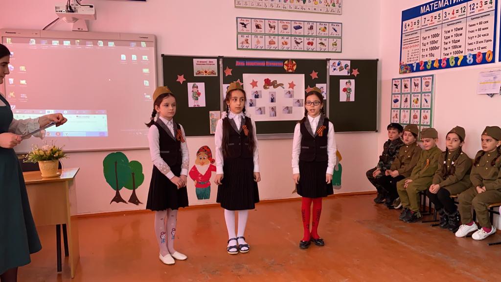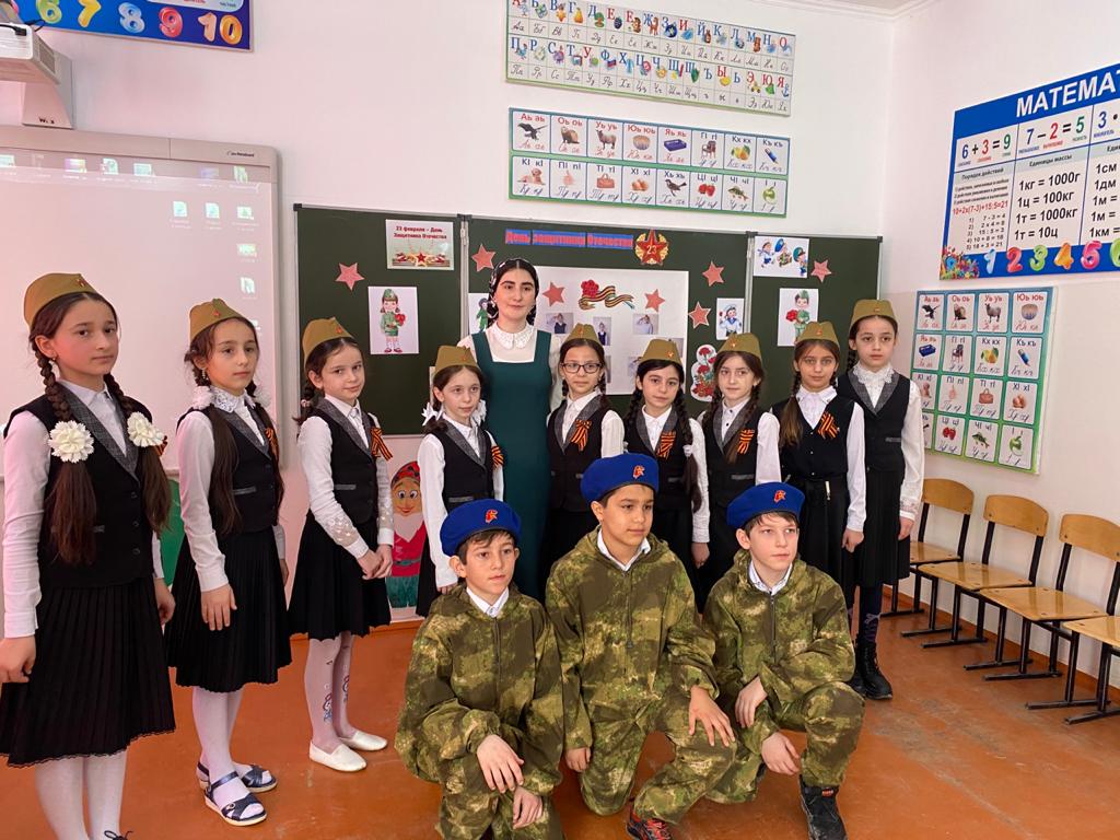 20 февраля в 11:00 состоялась празднично- развлекательная программа «23 февраля. День защитника Отечества», посвященный Дню защитника Отечества. Организатор д\д Магомадова Кулсум Султановна организовала для учащихся: игровую программу с занимательными играми, викторинами, конкурсами и видеоклипами. Надо отметить хорошую организацию мероприятий с использованием ИКТ, видеоматериалы и песни военных лет, что повысило качество и эффективность мероприятий.
