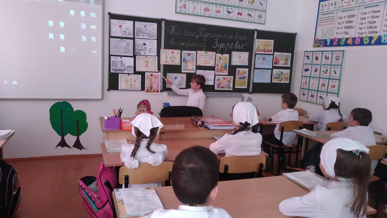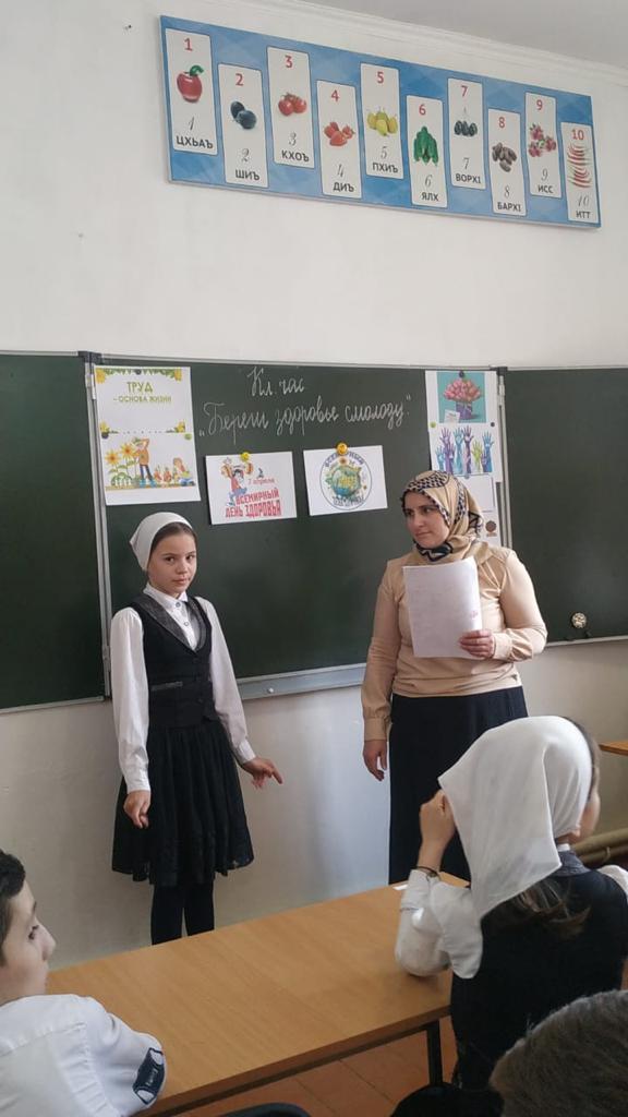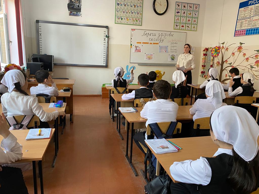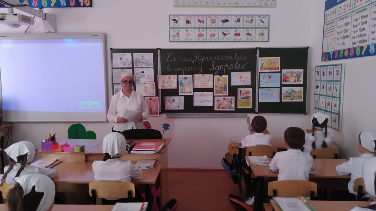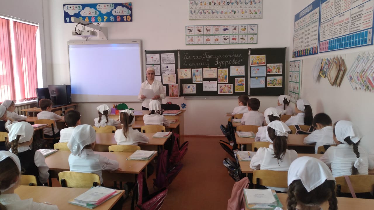 В течение недели классные руководители Исаева К.К. (1а кл.), ДашаеваР.А. (1в кл.), Магомадова К.С. (4а кл.), Мяхтиева Л.А-К. (2а кл.), Абдурашедова А.А.(1б кл.),Матаева Х.В.(2б кл.), Оздамирова М.М.(9а кл.), Сайдарханова Е.К.(4в кл.) Абдулхаджиева Л.С.(3б кл.),Абдуллаева Л.Р.(3а кл.),Дашаева А.М. (96 кл.), Элимханова Р.У.(8б кл.) провели в своих классах уроки здоровья «Путешествие в страну Здоровье», «День здоровья», «Здоровый образ жизни», « Мы за здоровый образ жизни», «Если хочешь быть здоров», «Береги здоровье смолоду».