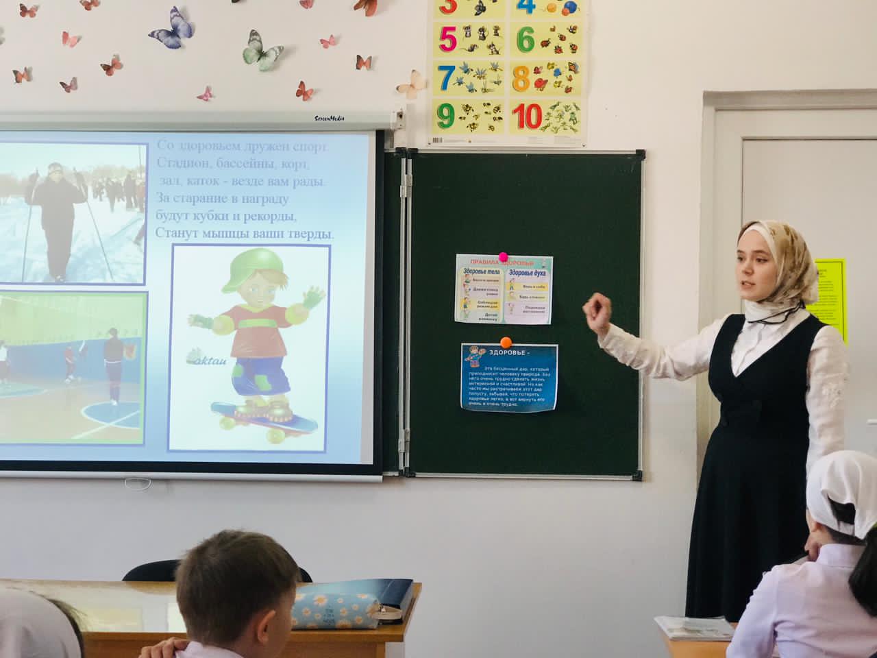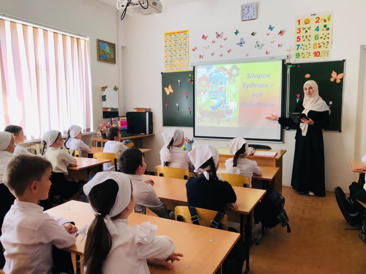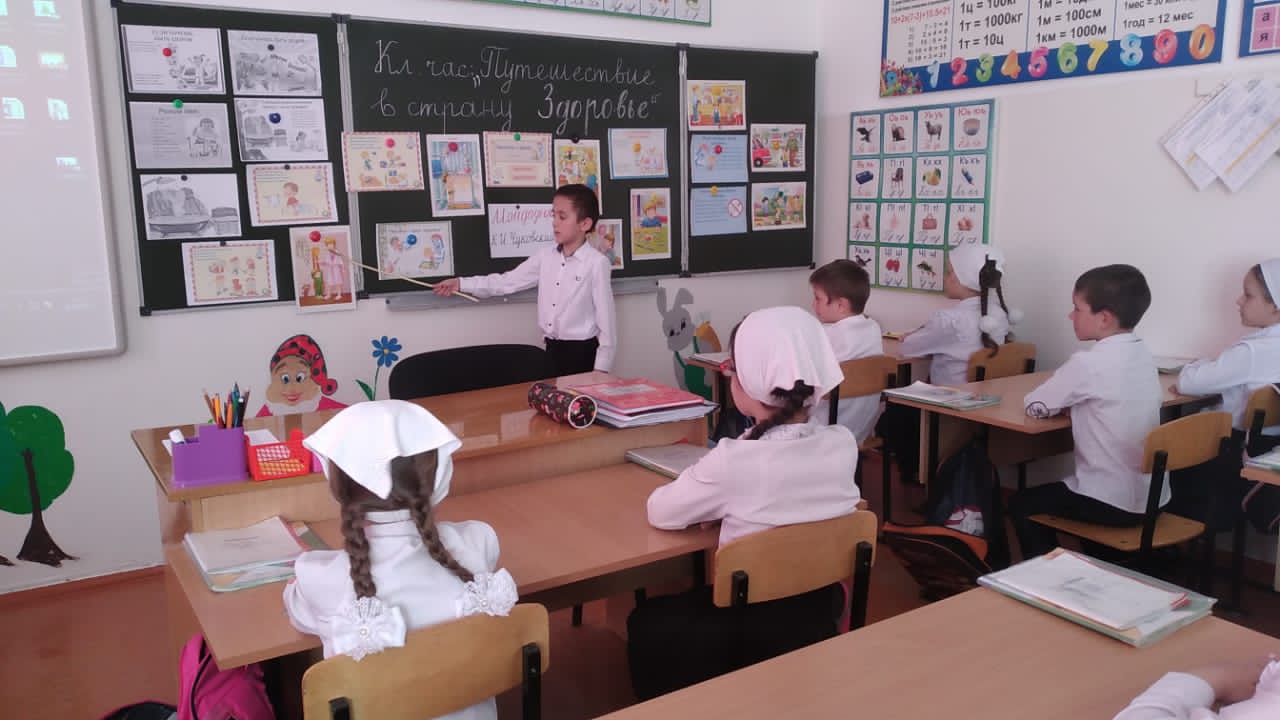 В течение недели классные руководители Исаева К.К. (1а кл.), ДашаеваР.А. (1в кл.), Магомадова К.С. (4а кл.), Мяхтиева Л.А-К. (2а кл.), Абдурашедова А.А.(1б кл.),Матаева Х.В.(2б кл.), Оздамирова М.М.(9а кл.), Сайдарханова Е.К.(4в кл.) Абдулхаджиева Л.С.(3б кл.),Абдуллаева Л.Р.(3а кл.),Дашаева А.М. (96 кл.), Элимханова Р.У.(8б кл.) провели в своих классах уроки здоровья «Путешествие в страну Здоровье», «День здоровья», «Здоровый образ жизни», « Мы за здоровый образ жизни», «Если хочешь быть здоров», «Береги здоровье смолоду».
