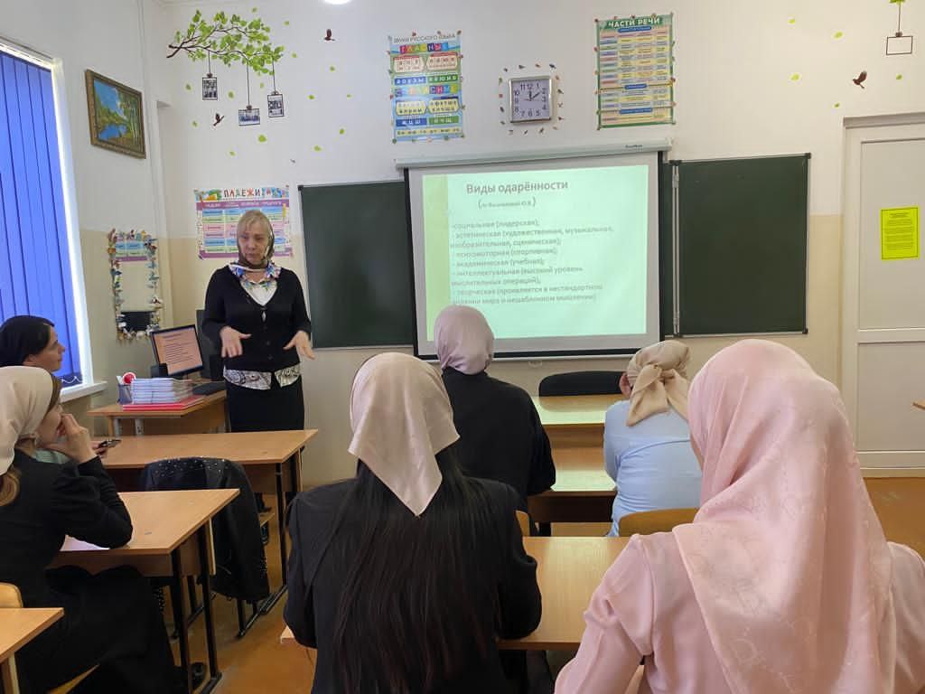 14.04.2022МБОУ"ООШс Мескер-юрт " педагог-психолог Оздамирова М.М. провела семинар с учителями на тему:"Психодиагностический инструментарий для выявления талантов и одаренности у детей"Раннее выявление, обучение и воспитание одарённых и талантливых детей составляет одну их главных проблем совершенствования системы образования и психологического сопровождения одаренные Одаренность-это загадка для большинства детей, учителей и многих родителей. Для широкой общественности же наиболее важными проблемами являются не столько научные основания одаренности, сколько прежде всего их реальные жизненные проявления, способы выявления, развития и социальной реализации. "Забота об одарённых детях сегодня-это забота о развитии науки, культуры и социальной жизни завтра детей",- говорила Марха Магамедовна.