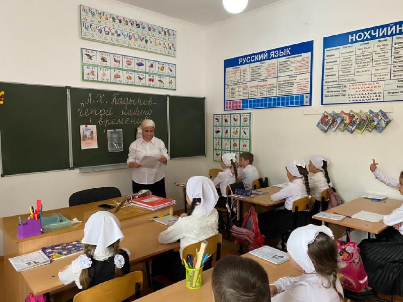 Учитель начальных классов Исаева К.К.провела классный час "А.Х.Кадыров-герой нашего времени".