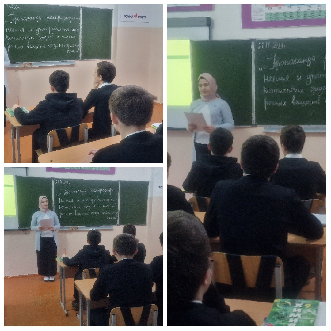20.11.2023Отделом в Шалинском районе УФСБ России по Чеченской Республике совместно с МУ «Отдел образования Шалинского муниципального района Чеченской Республики» проведено профилактическое мероприятие в МБОУ "ООШ с.Мескер-Юрт" на тему: «Пропаганда распространения и употребления наркотических средств и психотропных веществ среди несовершеннолетних».