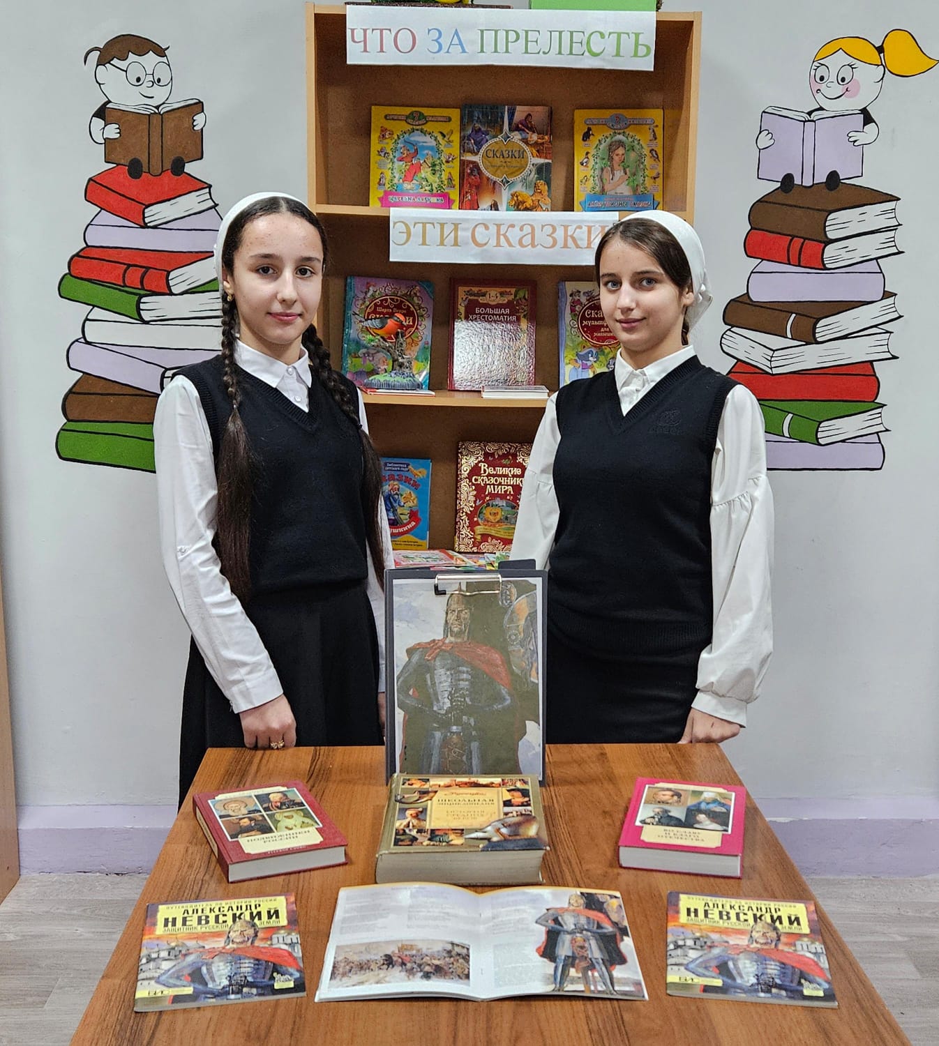 Также заведующим библиотекой Ибрагимовой Э.И. проведена книжная выставка «Святой витязь земли русской». На выставке представлены книги о жизни А. Невского: митрофорный протоиерей Александр Соколов «Святой витязь земли русской», сборник очерков «Великие полководцы», «Сто знаменитых полководцев», А. Митяев «Ветры Куликова поля», О. Трубачев «К истокам Руси», материалы о сражениях русского полководца.