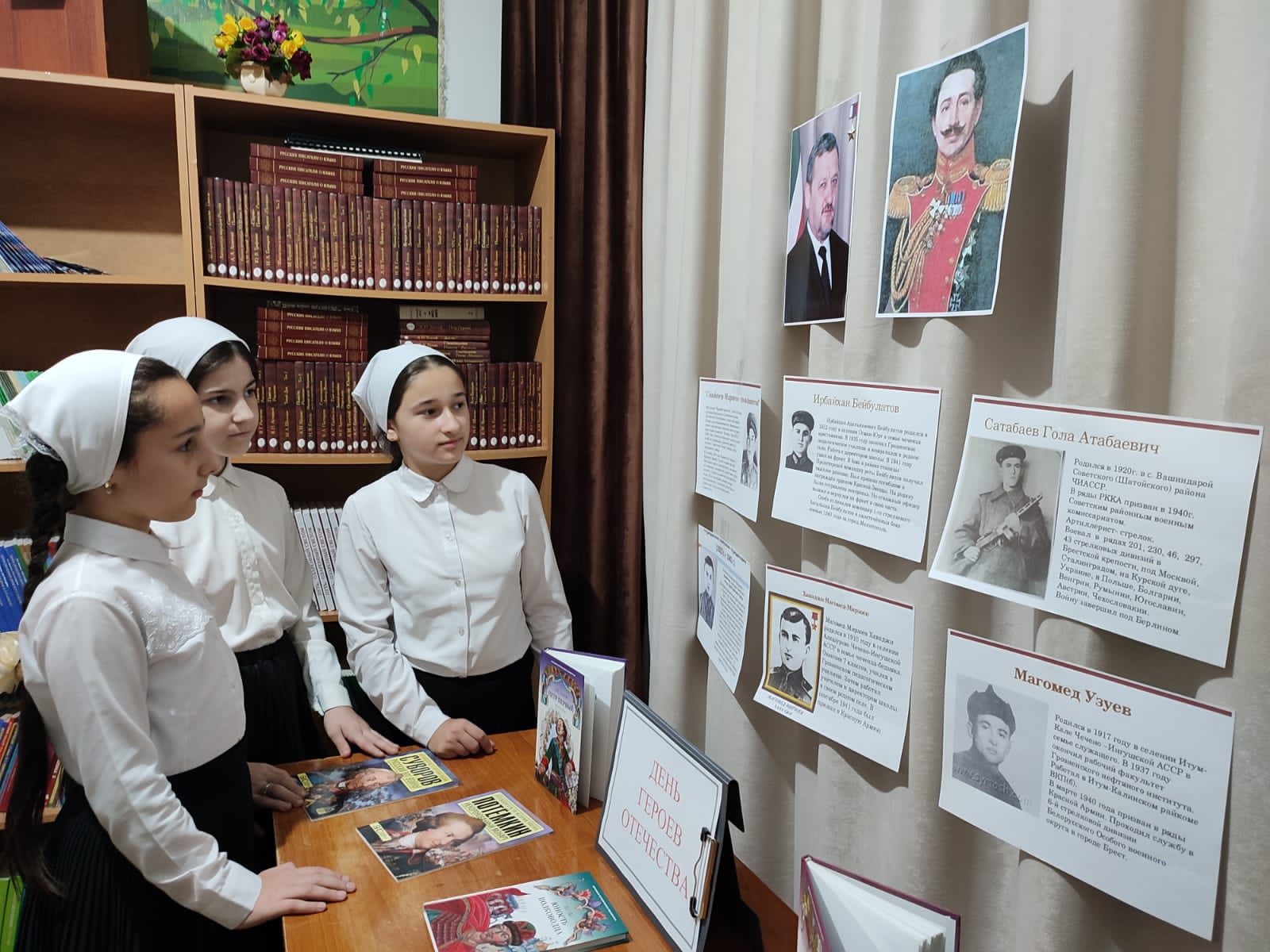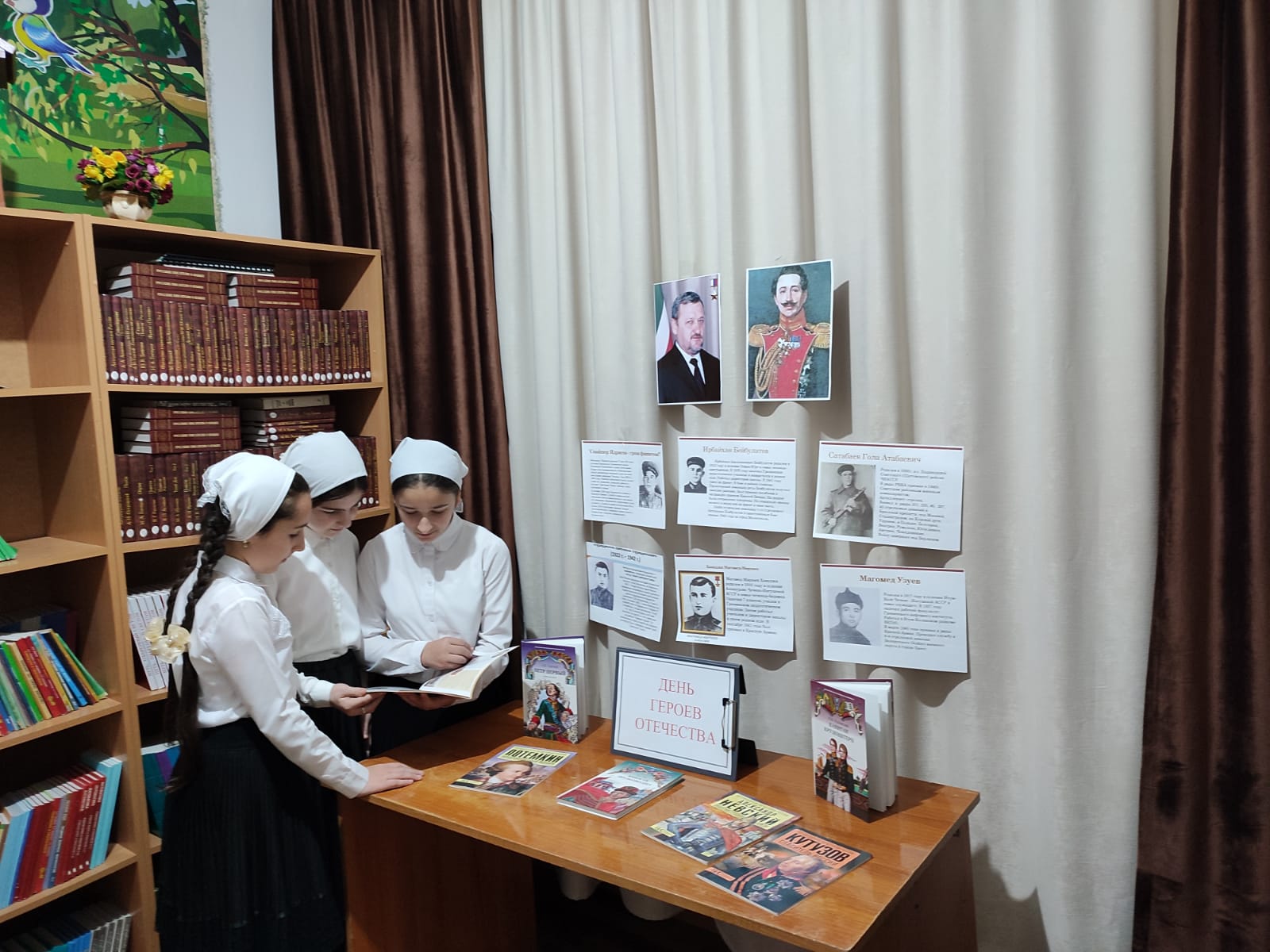 С 5 по 10 декабря 2023 года провела выставку заведующая библиотекой Ибрагимова Э.С. «День Героев Отечества».