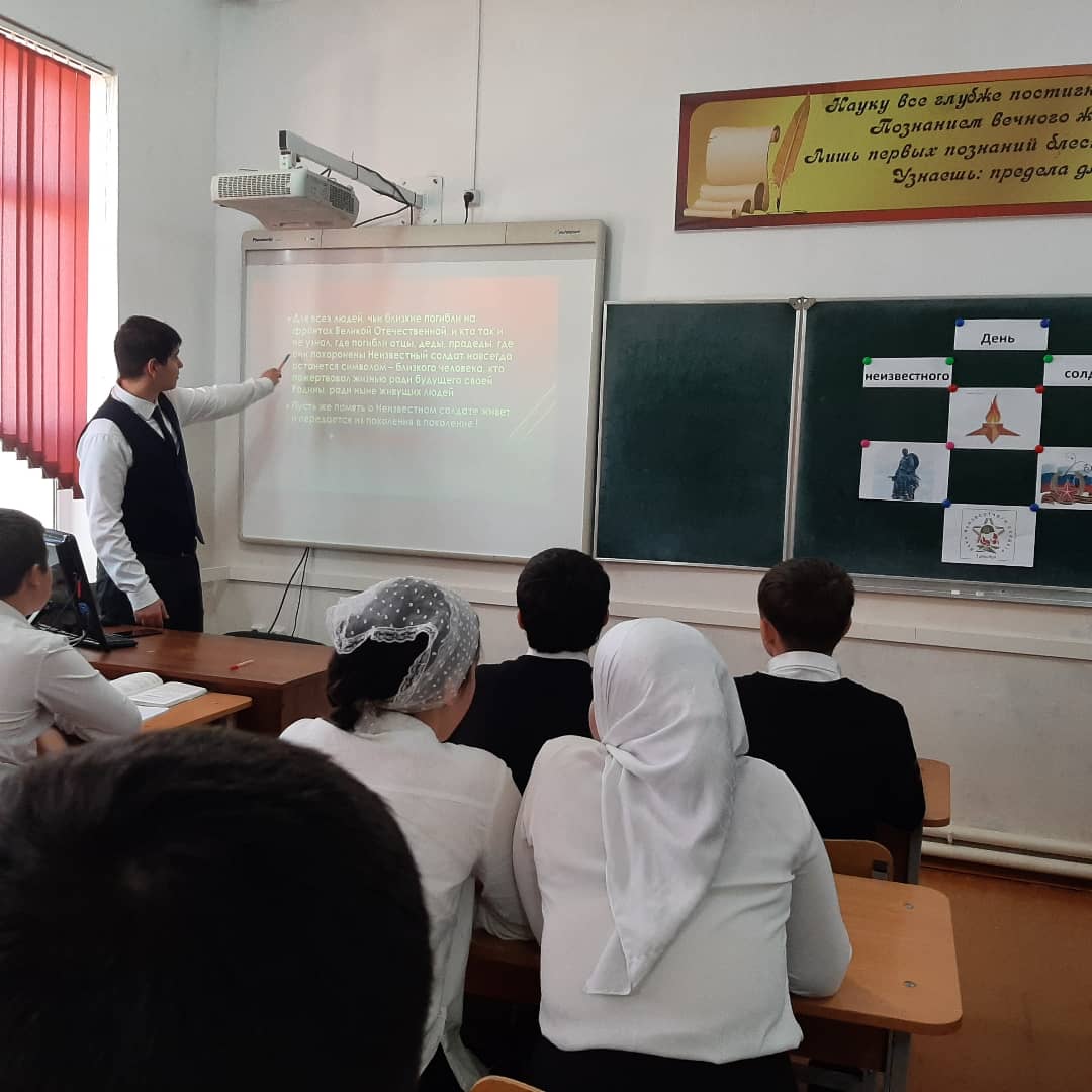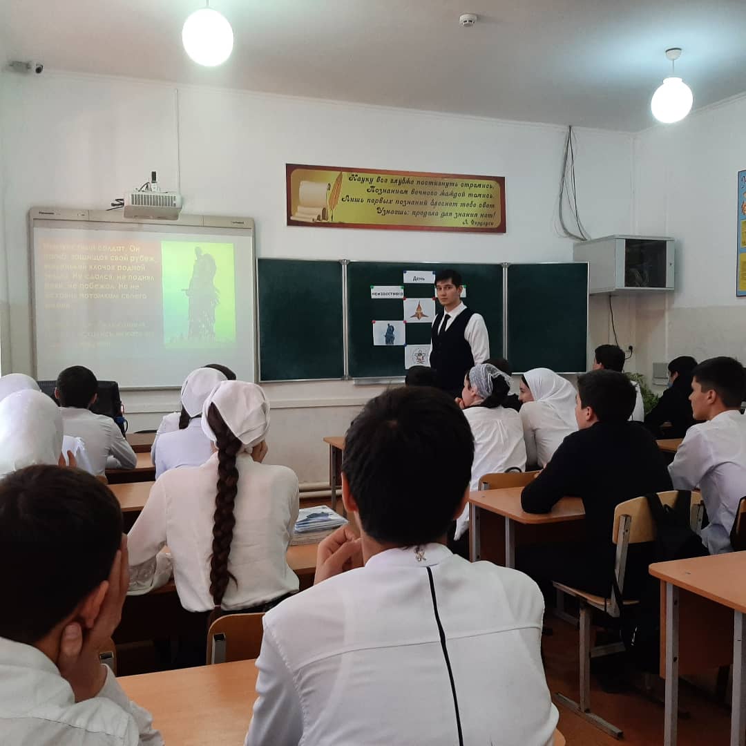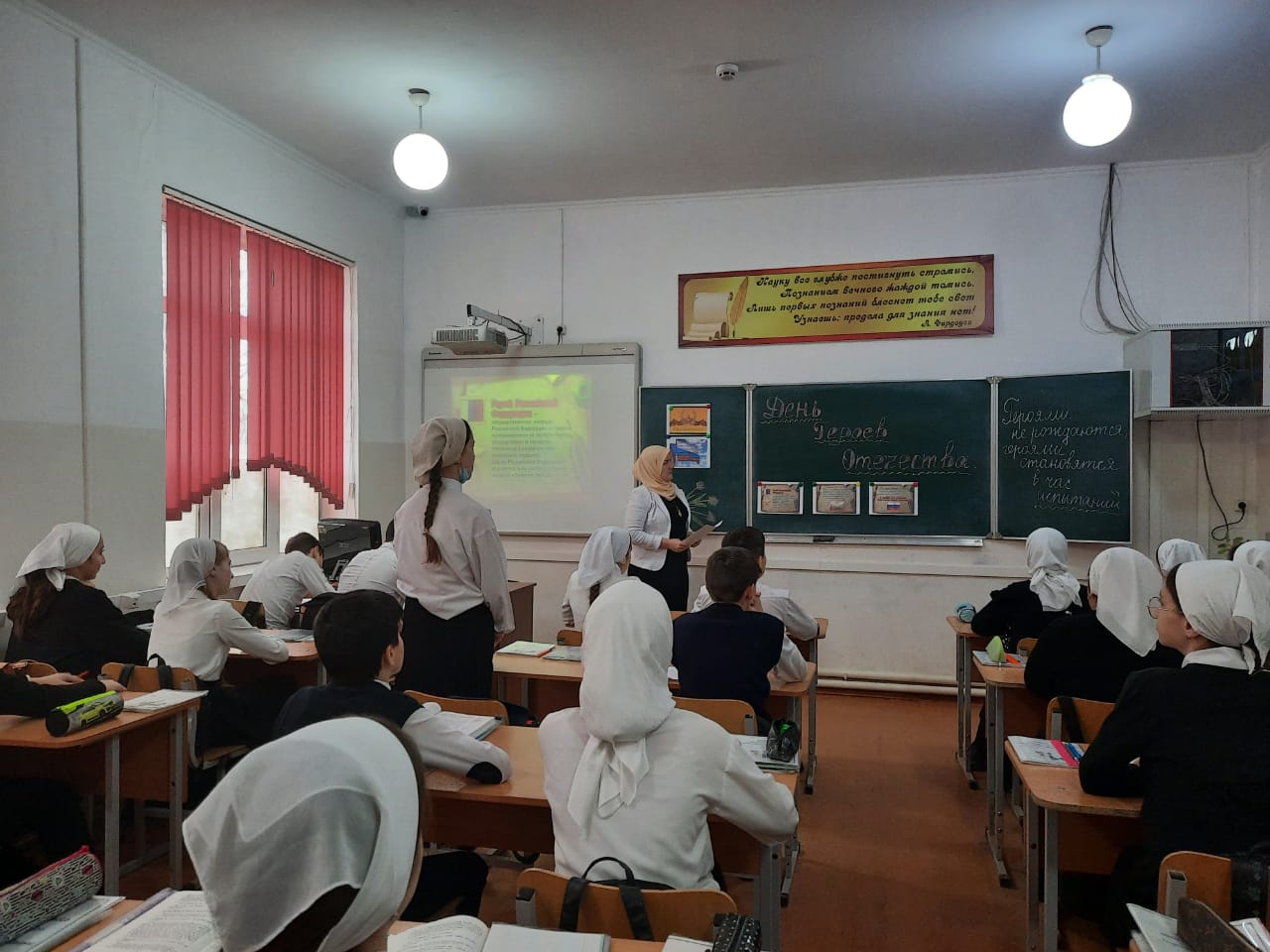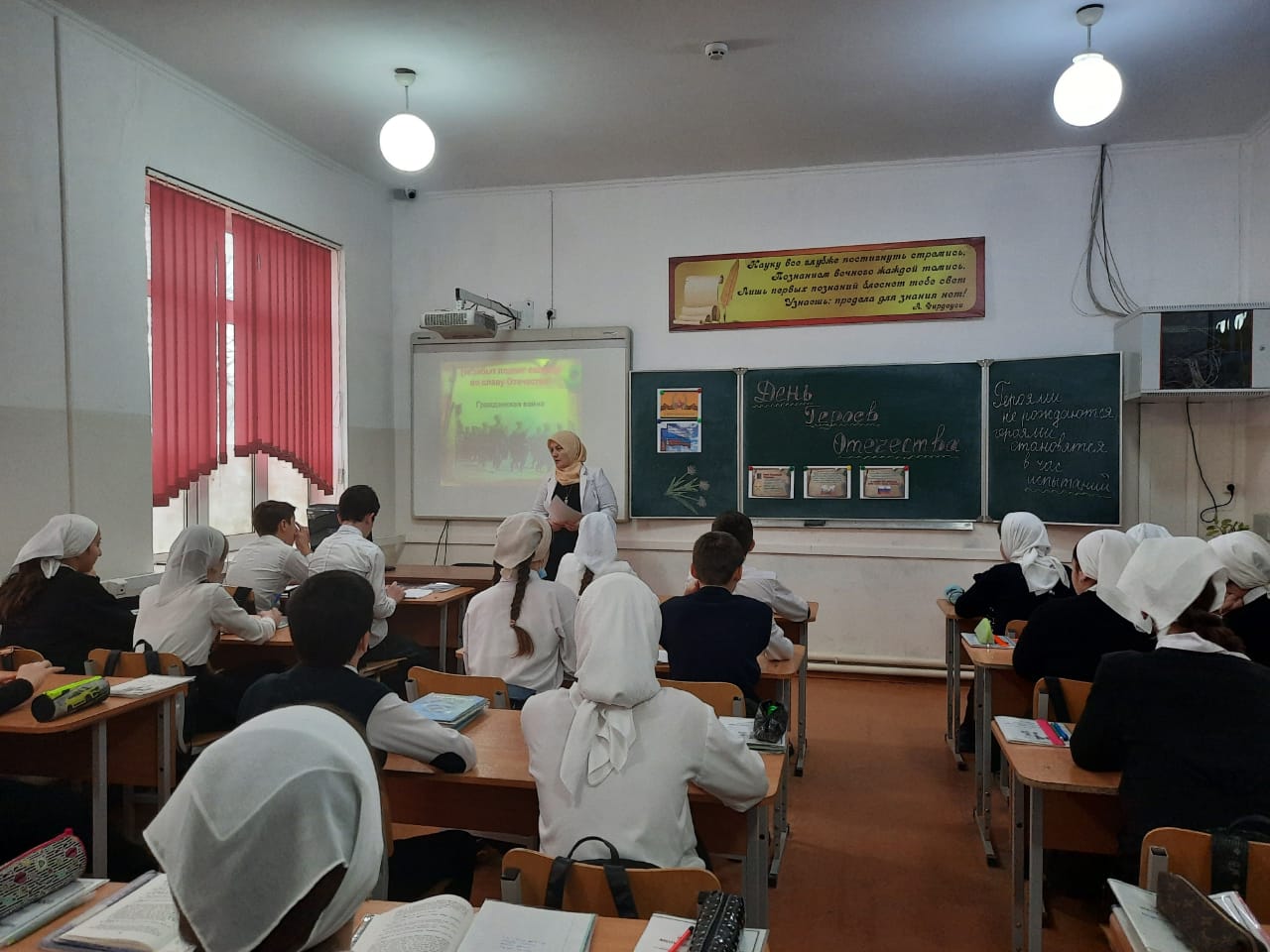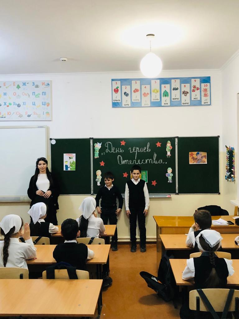 Также классный руководитель 9а класса Доутмерзаева Ф.В. провела классный час «День героев Отечества».