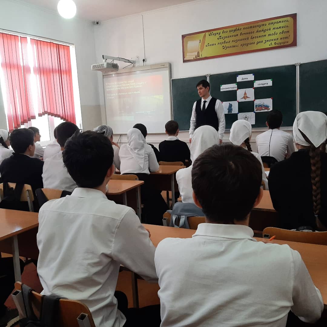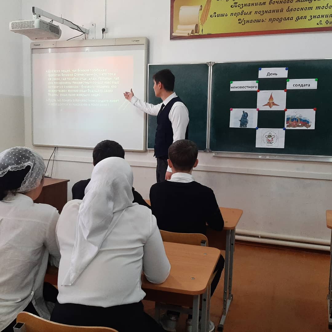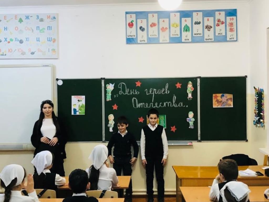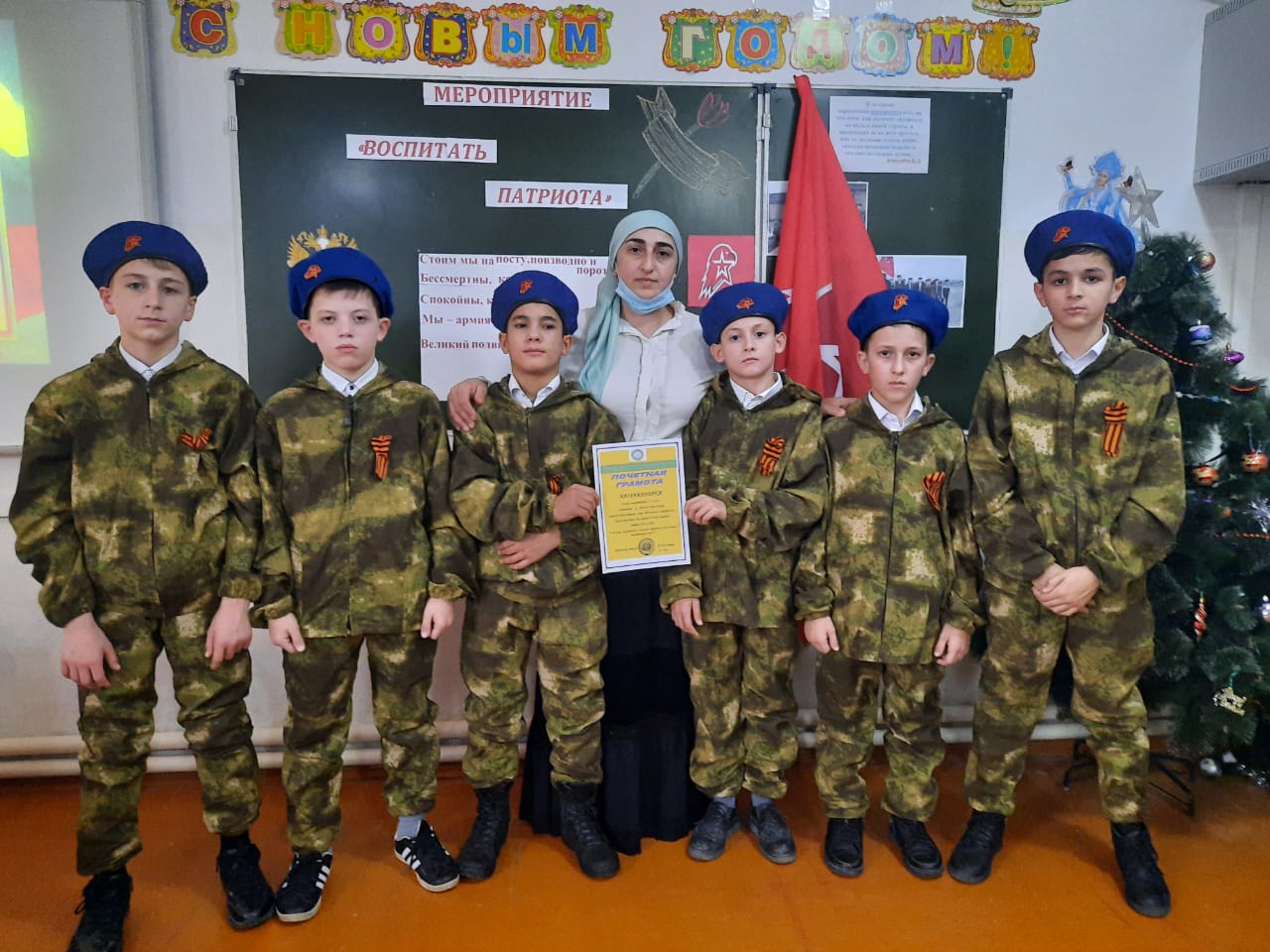 5 декабря 2023 года заместитель директора по ВР Гачаева Зарема Исаевна провела мероприятие «Воспитать патриота», посвящённый подвигу юных патриотов России в годы Великой Отечественной войны. На данном мероприятии учащиеся 7-х классов разделились на две команды и отвечали на вопросы о сверстниках времён тех страшных лет. Когда началась война, в боевой строй встали не только взрослые мужчины и женщины. На защиту России поднялись тысячи мальчиков и девочек. Они порой делали то, что не под силу было сильным мужчинам. Ведущие Салаватова Диана и Матаева Айшат задавали по три вопроса о Героях Отечества. Команды поочередно рассказывали о подвигах и о славе наших соотечественников. Ребята узнали такие имена, как Асланбек Шерипов, Ханпаш Нурадилов, Байбулатов Ибрайхан,Дачиев Хансултан,Висаитов Мовлид, Идрисов Абухаджи и т.д.