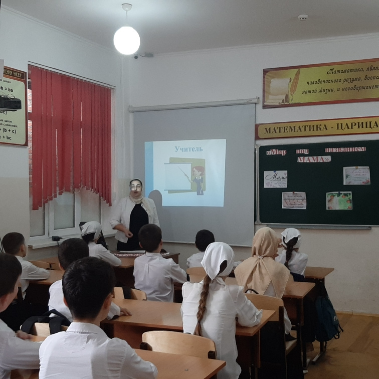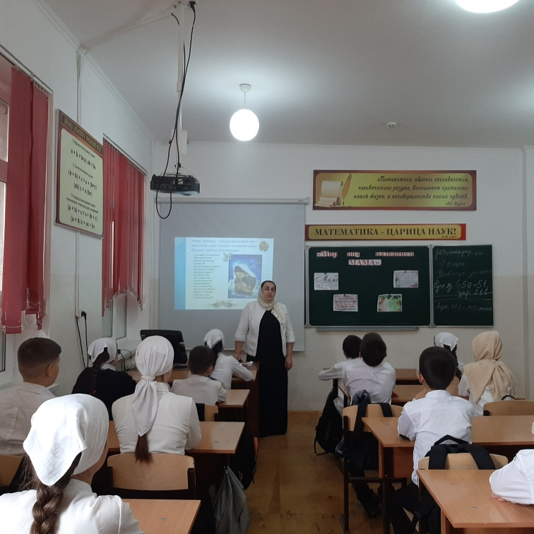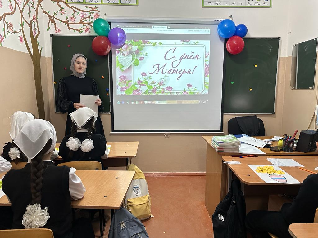 27 ноября 2023г. классный руководитель 4б класса Тайсумова Л.Р. провела классный час «Мир под названием МАМА».
