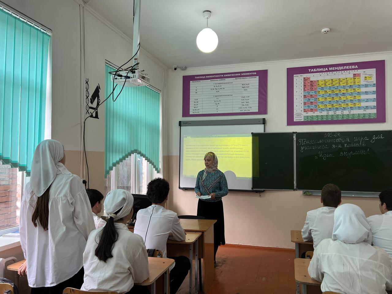 22.04.2024В МБОУ ‘ООШс.Мескер-Юрт» с 22. апреля по 26 апреля была проведена «Неделя психологии» среди учащихся 1-9 классов,педагогов и родителей.Неделя проводилось в соответствии с утверждением планом. Для учащихся 9-х классов проведена интерактивная игра «Идет экзамен». Участники в игровой форме актуализировали знания в процедуре проведения экзамена,выполняли упражнения на эмоциональную стабилизацию и снятие экзаменационной тревожности (охват 26 учащихся).