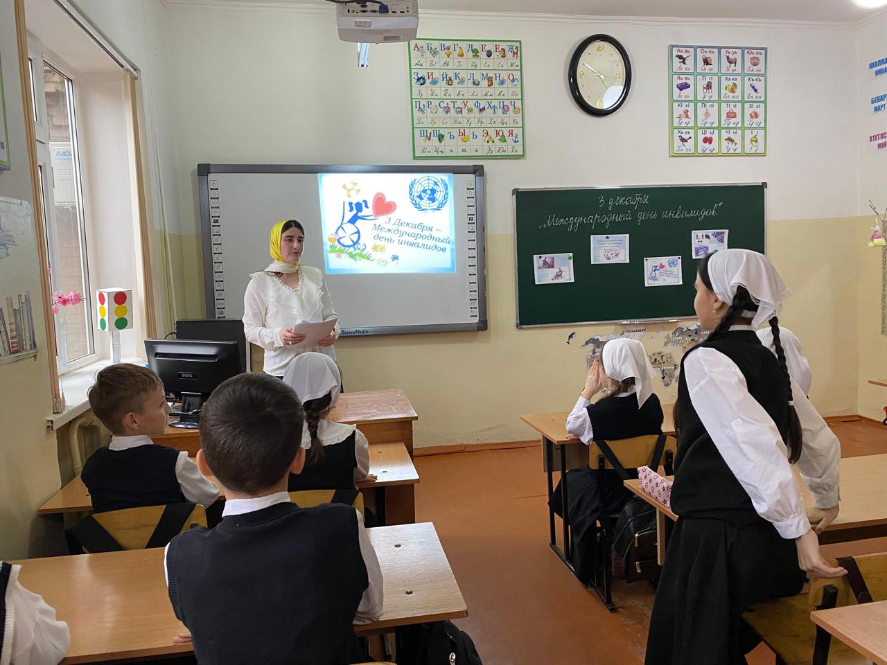 03.12.2024В 3 декабря Магомадова К.С., учитель начальных классов провела классный час «Доброе сердце». В начале мероприятия учащиеся размышляли.что такое добро,добрата,добрый человек.Далее был показан мультфильм «Про Диму».После демонстрации фильма дети сделали вывод: хоть мы отличаемся друг от друга .но мы можем делить радость общение с ним