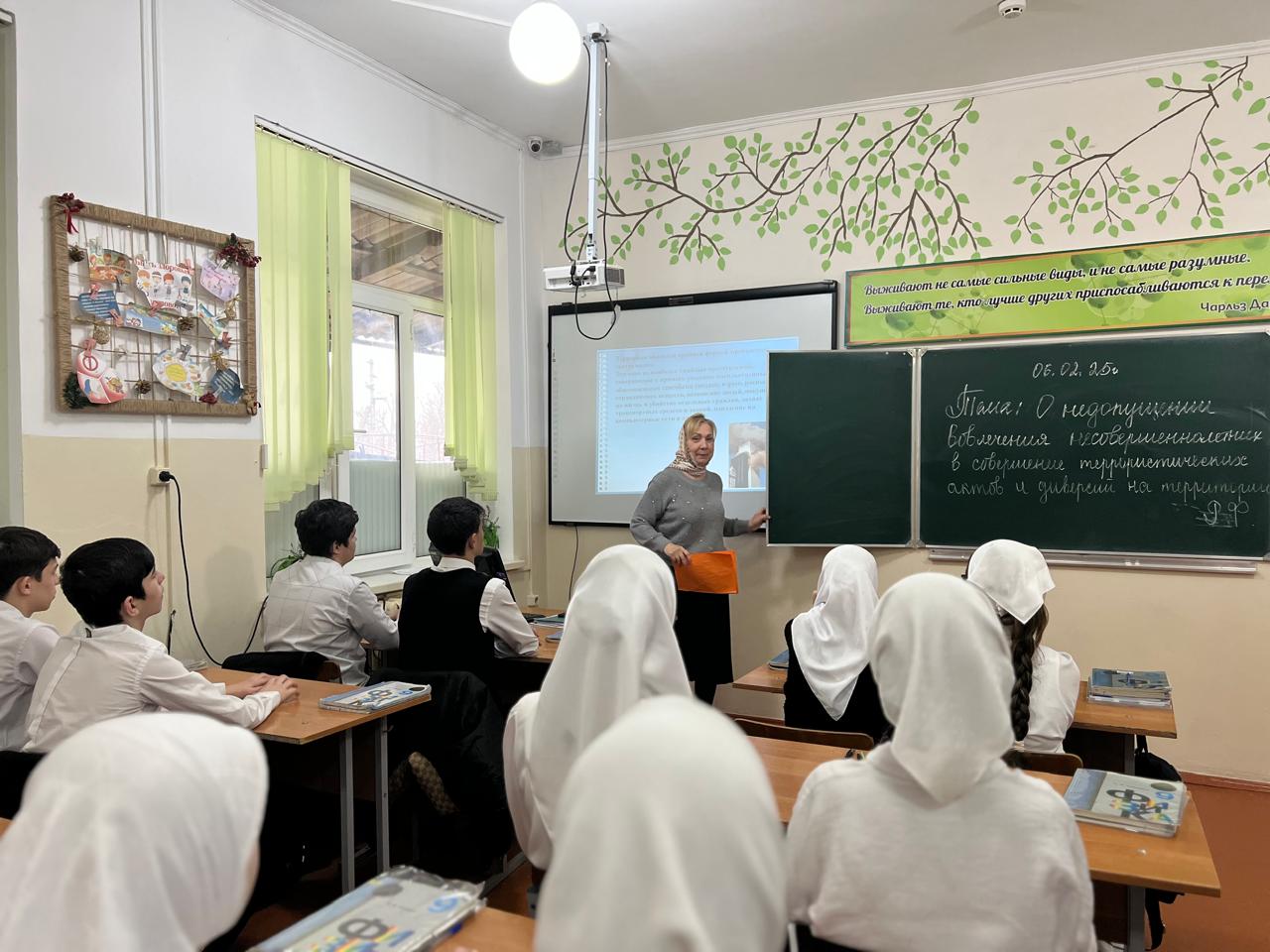 06.02.2025Отделом в Шалинском районе УФСБ России по Чеченской Республике совместно с МУ «Отдел образования Шалинского муниципального района Чеченской Республики» проведено профилактическое мероприятие в МБОУ "ООШ с.мескер-Юрт" на тему: «О недопущении вовлечения несовершеннолетних в совершение террористических актов и диверсий на территории РФ».